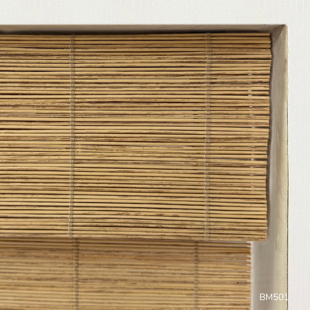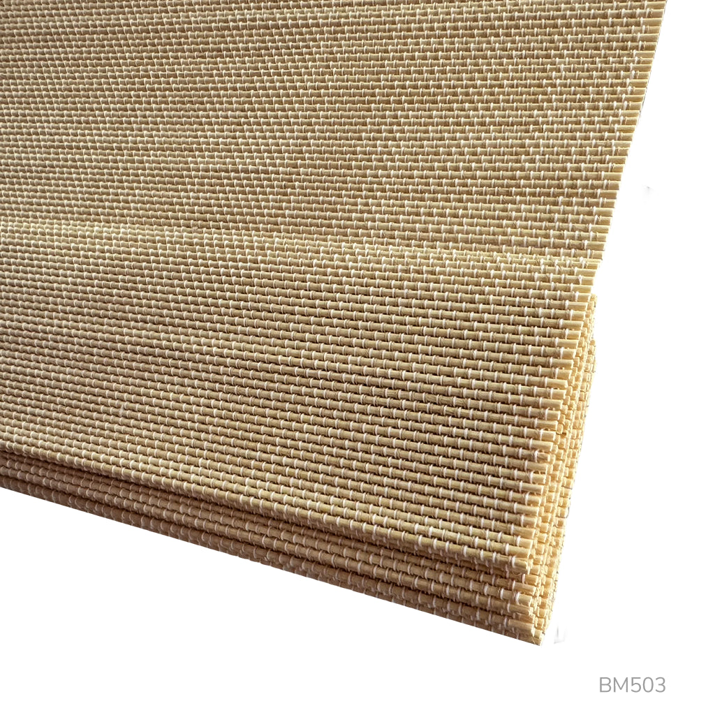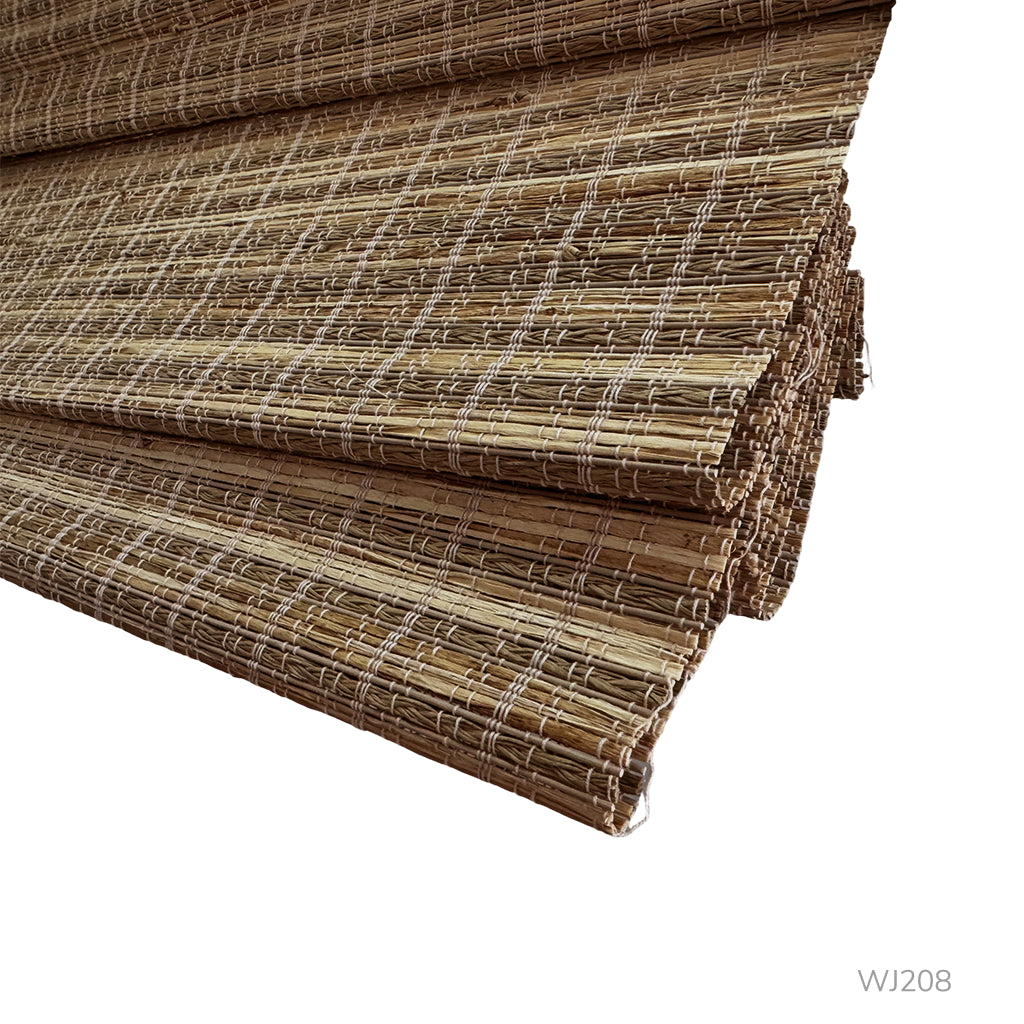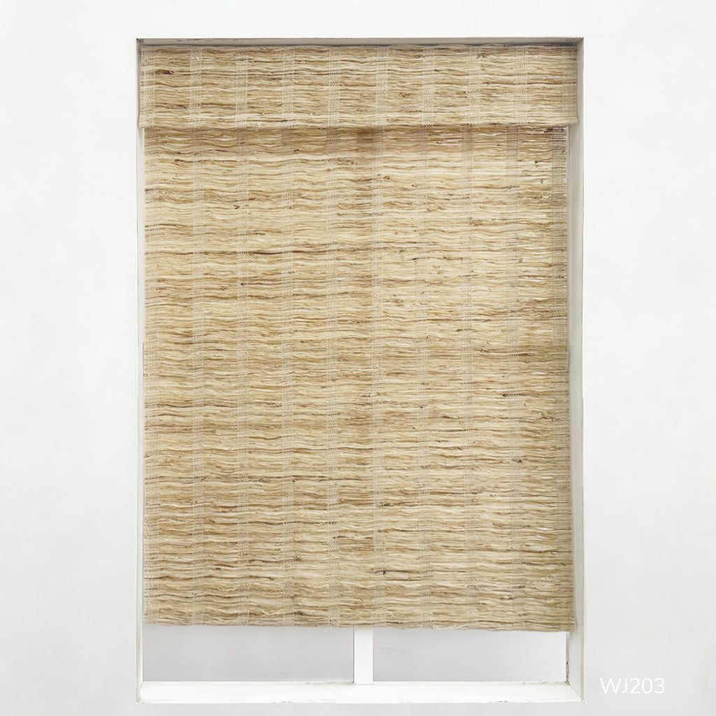 Handwoven shades are typically crafted from natural, eco-friendly materials like bamboo, ramie, jute, and other plant-based fibers.