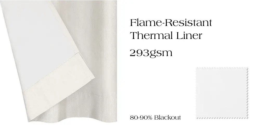 Room Darkening | 80%–90% | Flame-Resistant Thermal Liner | Flame-Resistant | 293gsm | Light Gray | 1 | Dry Clean |