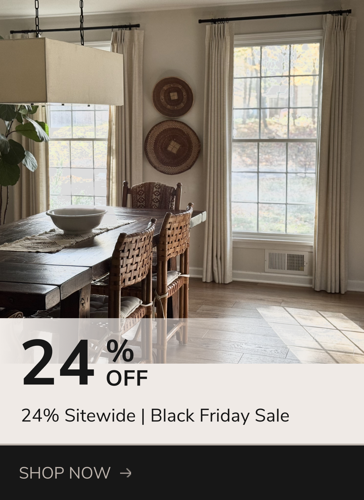 When you order swatches, you’ll receive a $10 gift card via email. Simply apply it at checkout on your next drapery or shade order.