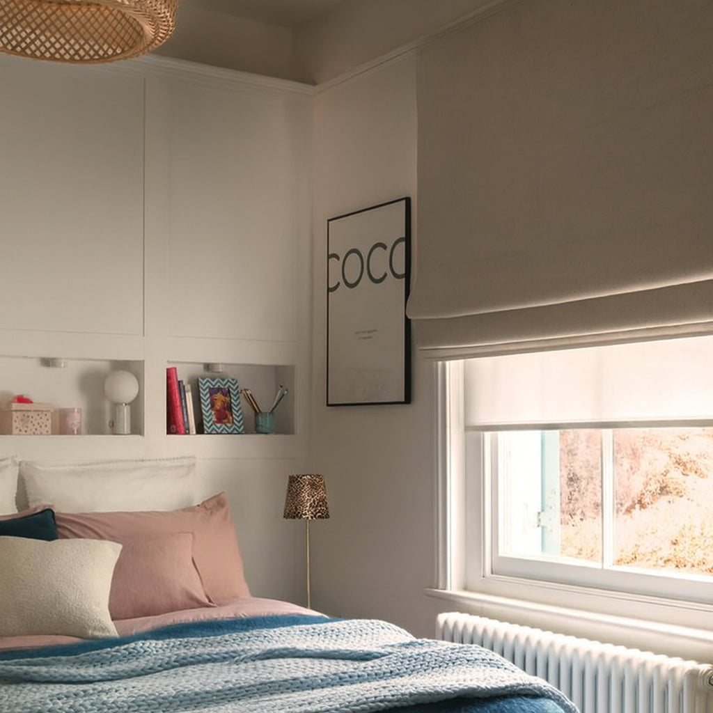 Experience total darkness and calm with our 100% Blackout Roman Shade — beautifully tailored, lightweight, and crafted for restful sleep and year-round comfort.
