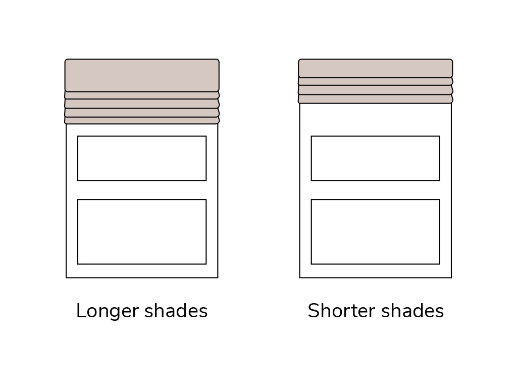 Longer shades have more fabric and folds, creating a thicker, bulkier stack.