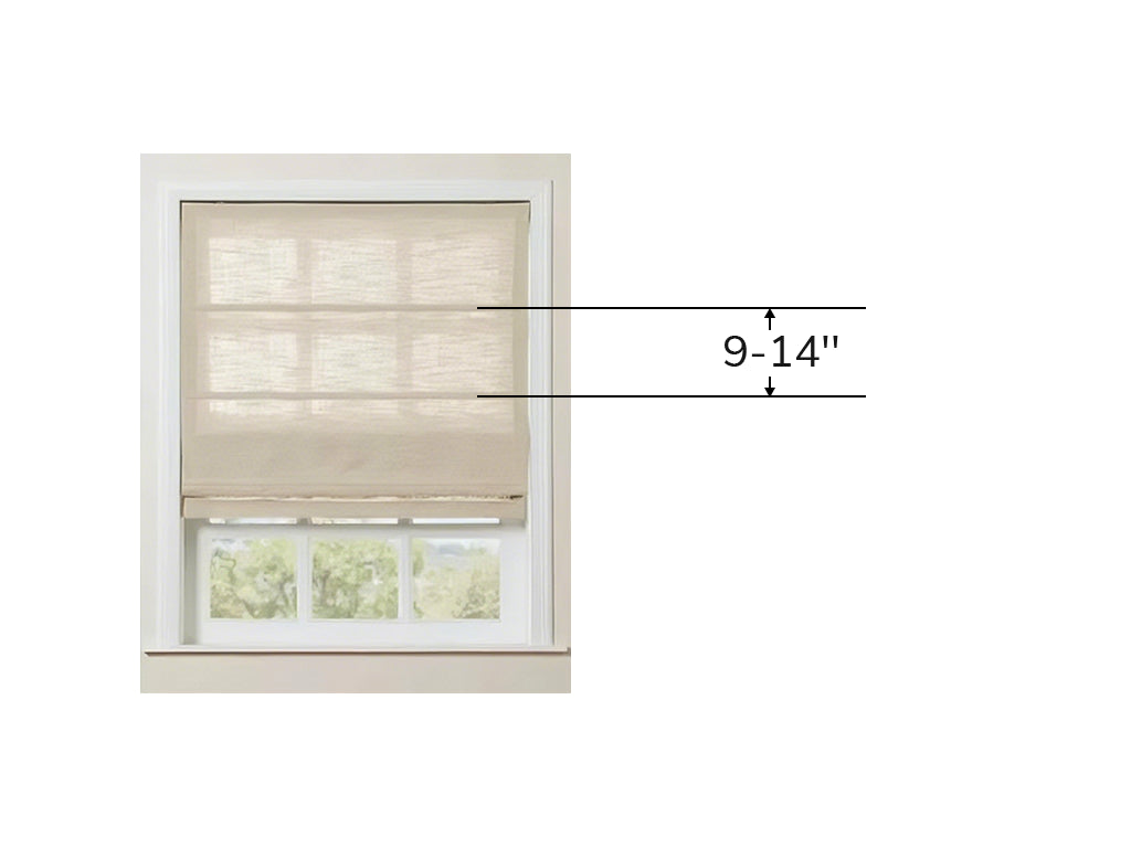 Most Roman shades have rib spacing between 9 and 14 inches.